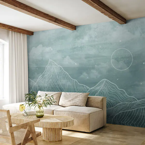 16.32 €9.79 €Papier peint Une chaîne de montagnes avec des nuages et du soleil