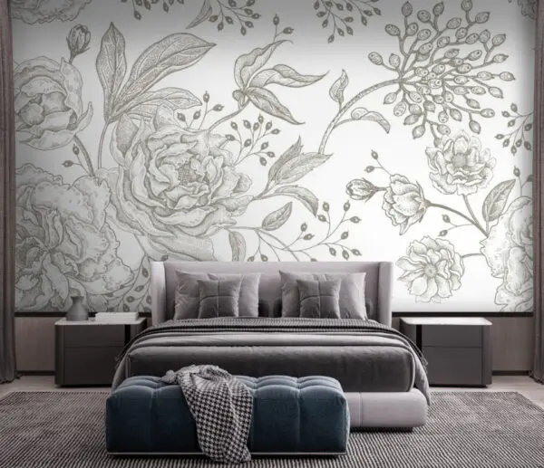 16.32 €9.79 €Papier peint Motif floral gris et blanc