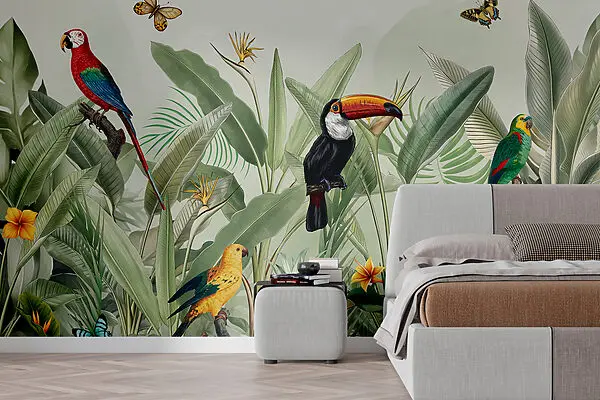 Papier peint Papier peint Un papier peint avec des oiseaux et des papillons (UGS : w00635)