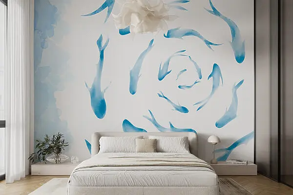 • Promo -45% Papier peint Papier peint Un groupe de poissons bleus nageant dans l'eau (UGS : w00513)