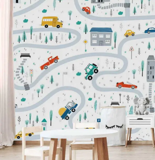 18.24 €9.12 €Papier peint Carte des voitures et des bâtiments
