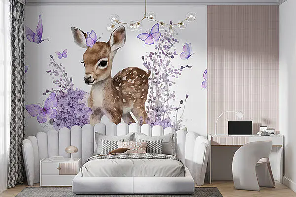 16.91 €9.30 €Papier peint Bébé cerf entouré de fleurs violettes