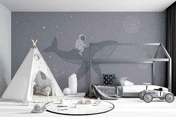 Papier peint Papier peint Personne chevauchant une baleine (UGS : w08298)