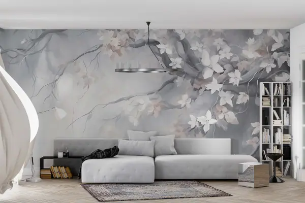 15.50 €9.30 €Papier peint Peinture d’un arbre avec des fleurs blanches