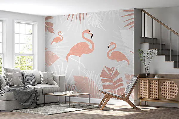 15.50 €9.30 €Papier peint Un groupe de flamants roses et des feuilles