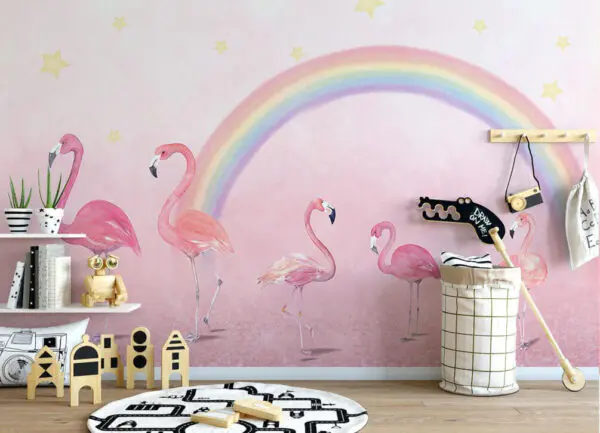 16.32 €9.79 €Papier peint Groupe de flamants roses avec un arc-en-ciel