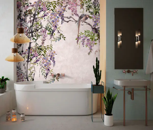 18.24 €9.12 €Papier peint Peinture d’une branche avec des fleurs roses et des oiseaux