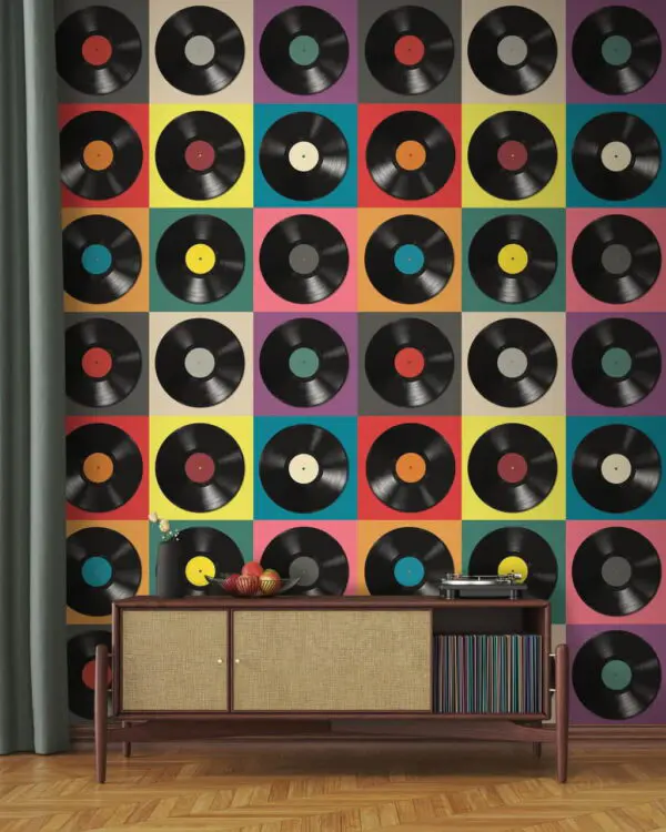 Papier peint Papier peint Motif de disques vinyles noirs (UGS : u51622)
