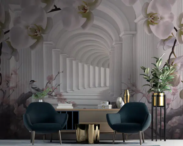 16.32 €9.79 €Papier peint Colonnes blanches et fleurs dans un couloir