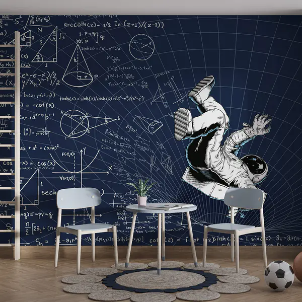 16.91 €9.30 €Papier peint Homme en combinaison spatiale tombant sur un tableau avec des équations mathématiques