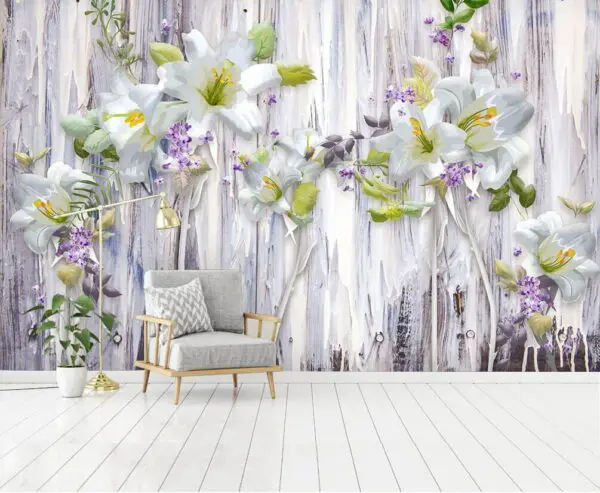 16.32 €9.79 €Papier peint Groupe de fleurs blanches sur une surface en bois
