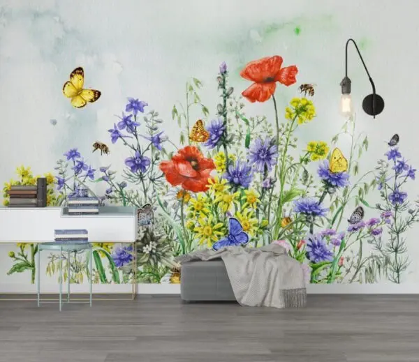 16.32 €9.79 €Papier peint Peinture de fleurs et de papillons