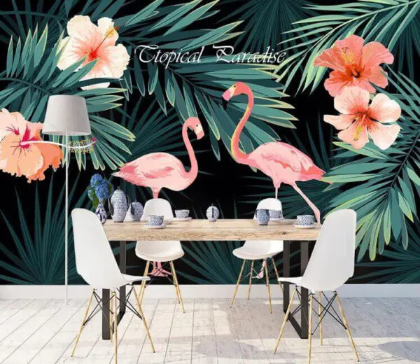 15.50 €9.30 €Papier peint Couple de flamants roses et fleurs