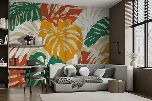 • Promo -40% Papier peint Papier peint Feuilles colorées sur fond blanc (UGS : w01002v1)