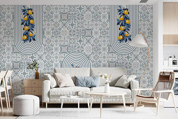 16.32 €9.79 €Papier peint Motif de fruits sur fond blanc et bleu