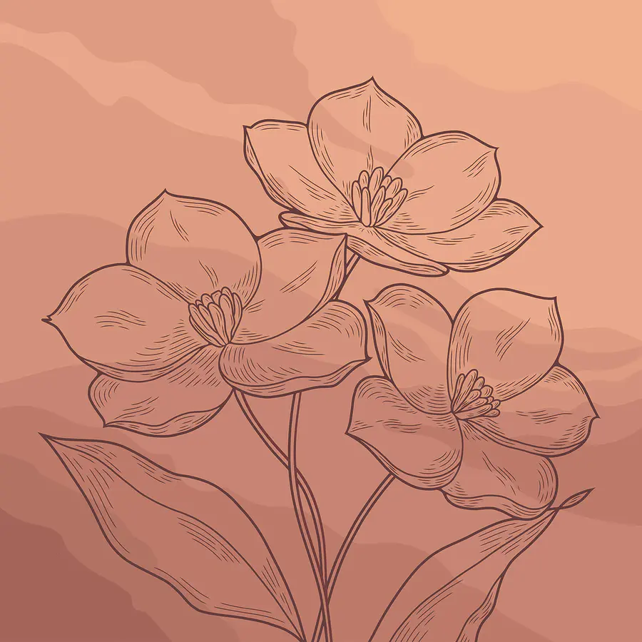Papier peint Dessin de fleurs sur fond rose
