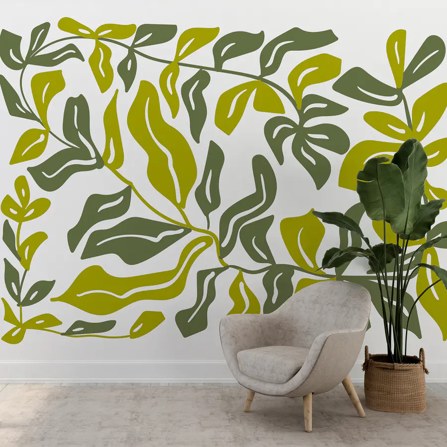 Papier peint Dessin de feuilles et de fleurs