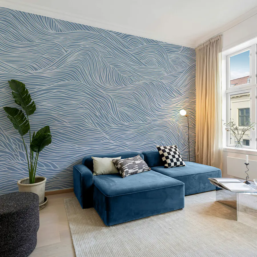 Papier peint Motif ondulé bleu et blanc