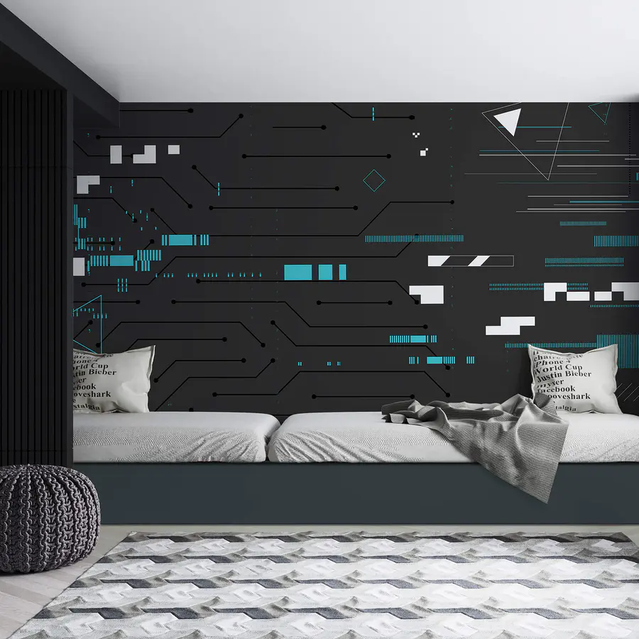 15.50 €9.30 €Papier peint Hexagones noirs avec lumières bleues