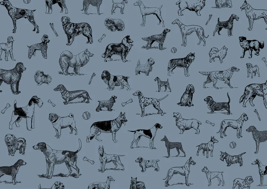 Papier peint Groupe de chiens sur fond bleu