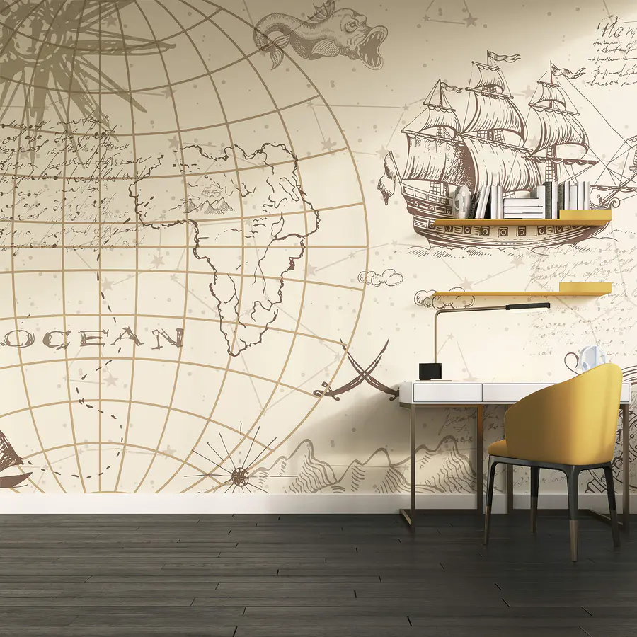 Papier peint Carte du monde et bateau