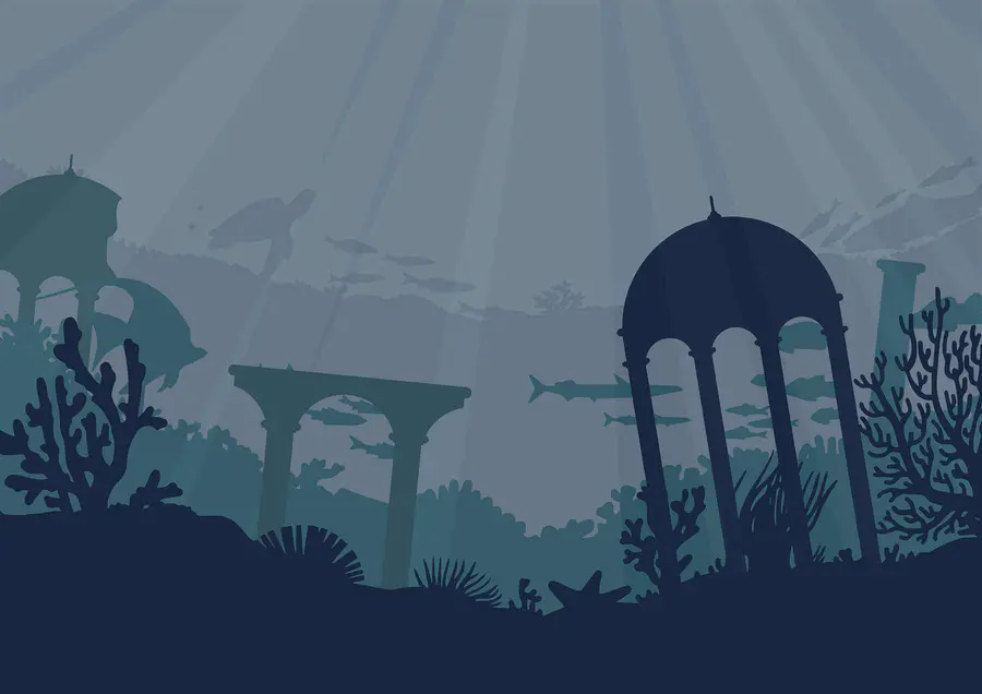 Papier peint Silhouette d’un bâtiment et de plantes marines