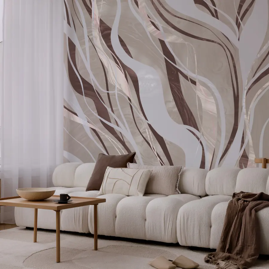 Papier peint Tourbillons bruns et blancs