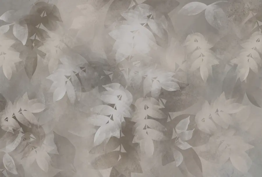 Papier peint Fond gris et blanc avec des feuilles