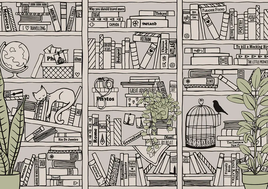 Papier peint Papier peint avec des livres sur des étagères
