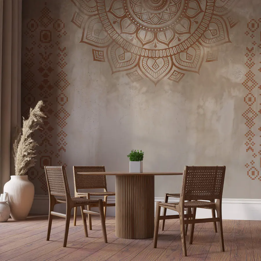 Papier peint Mandala blanc et brun
