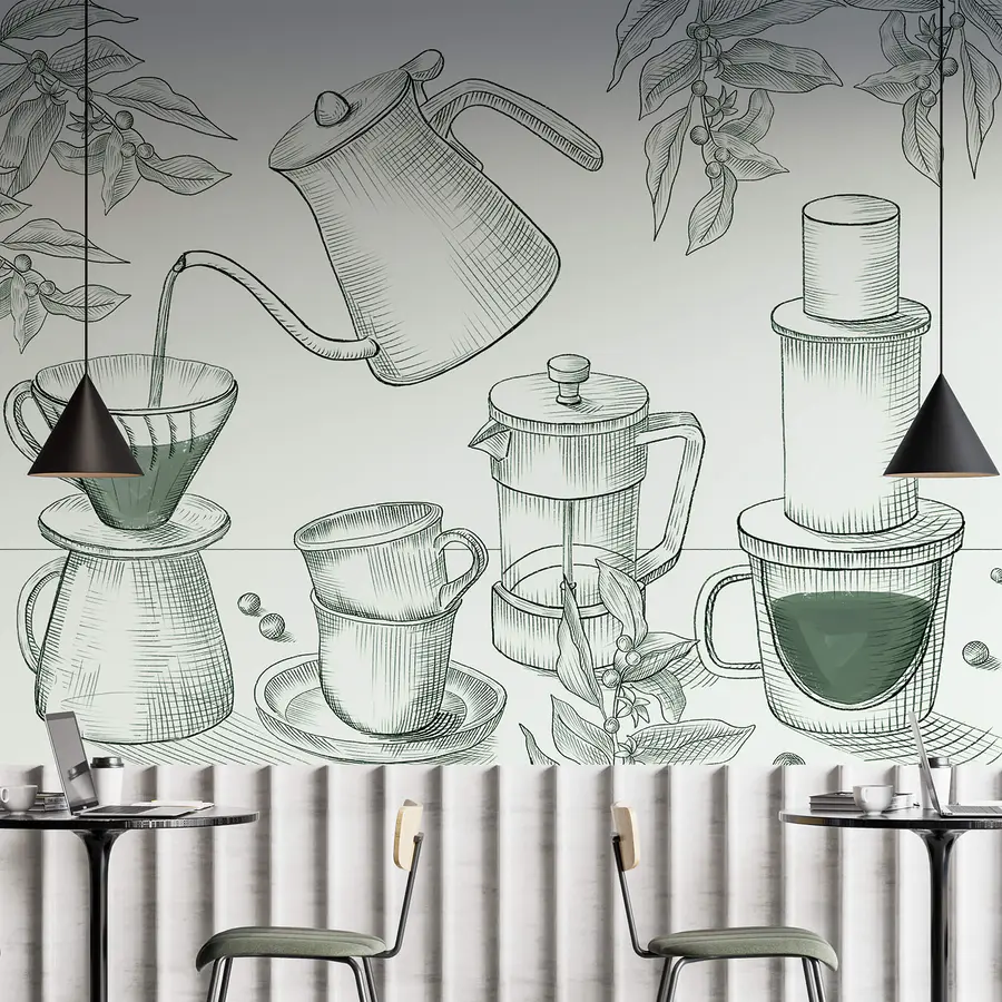 16.32 €9.79 €Papier peint Dessin du processus de préparation du café