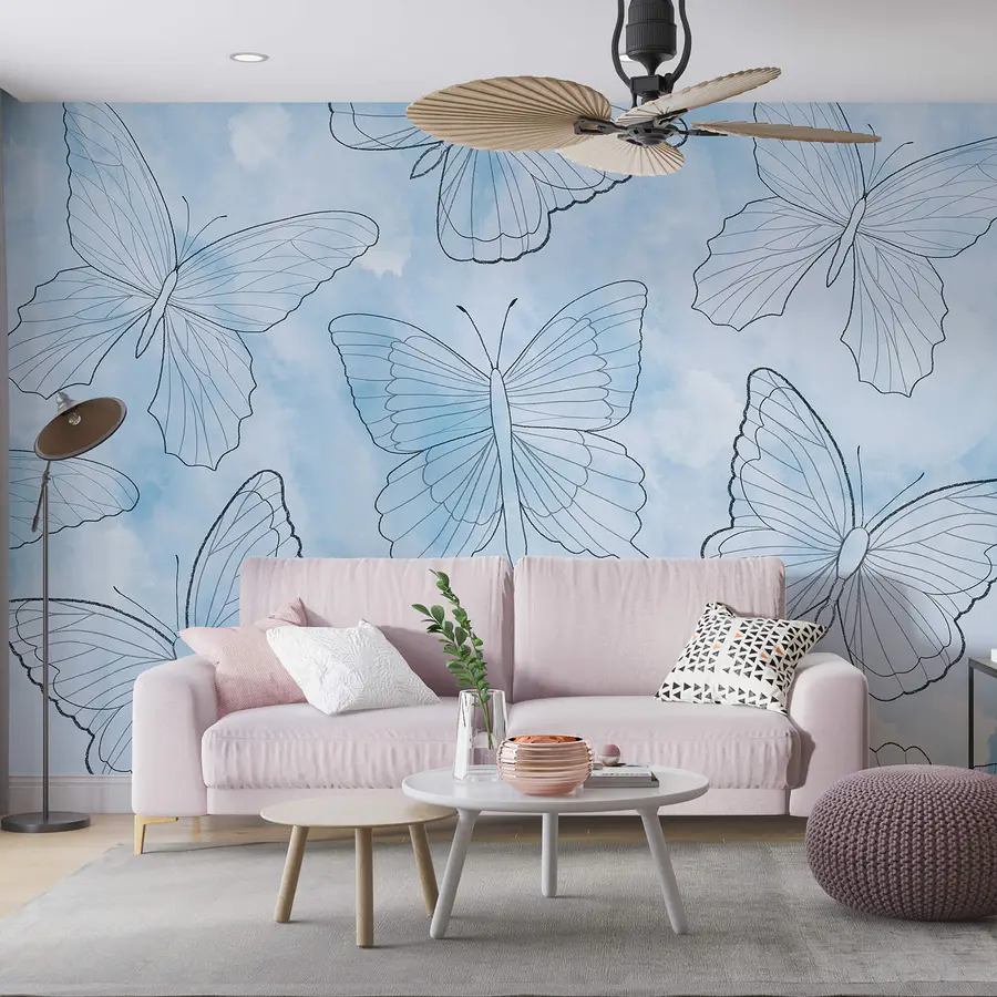 Papier peint Motif de papillons sur fond bleu