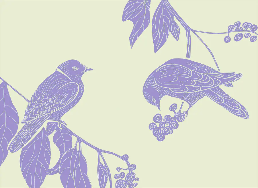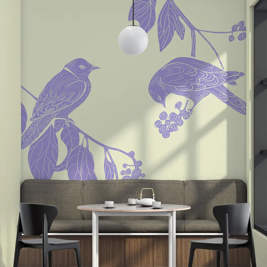 Papier peint Dessin d’oiseaux sur une branche