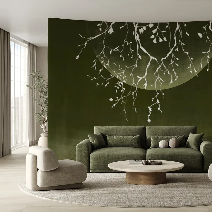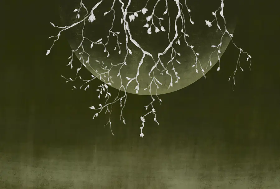 Papier peint Branches d’arbre avec feuilles et lune