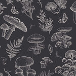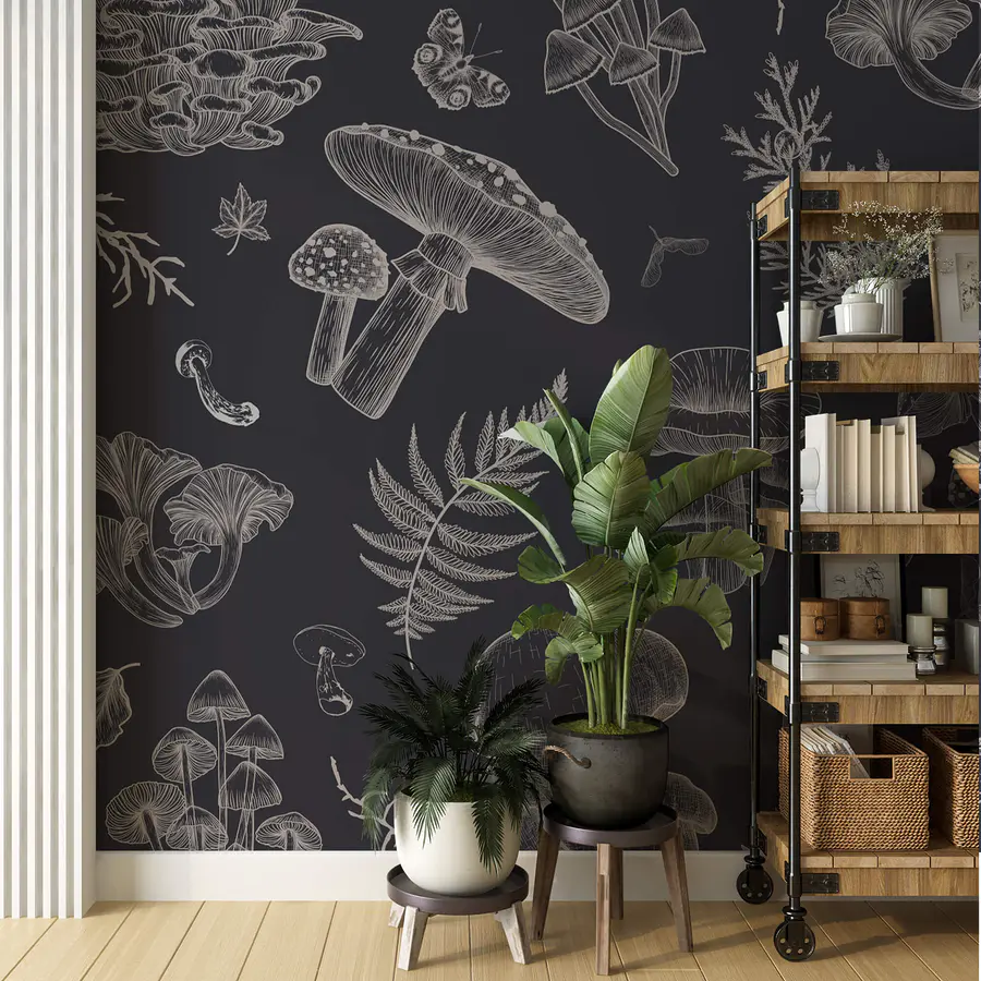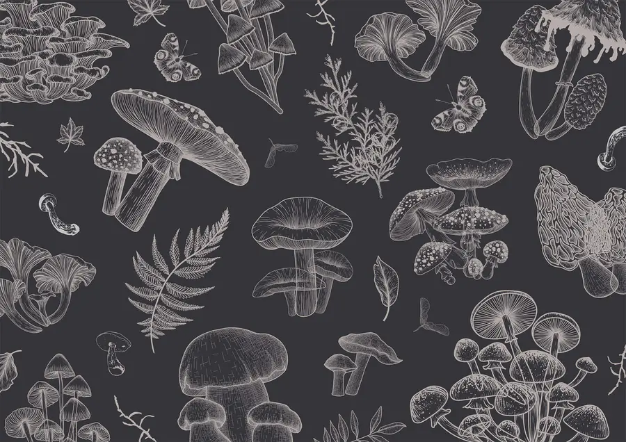 Papier peint Motif de champignons et de feuilles