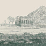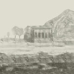 Papier peint Peinture d’un bâtiment et d’une montagne