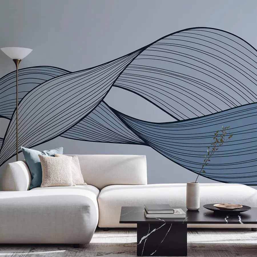 Papier peint Lignes ondulées bleues et noires