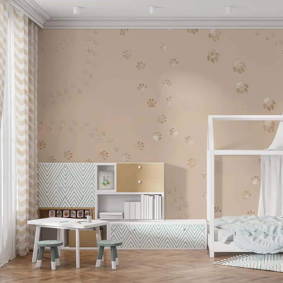 Papier peint Motif d’empreintes de pattes et d’oiseaux