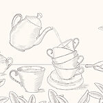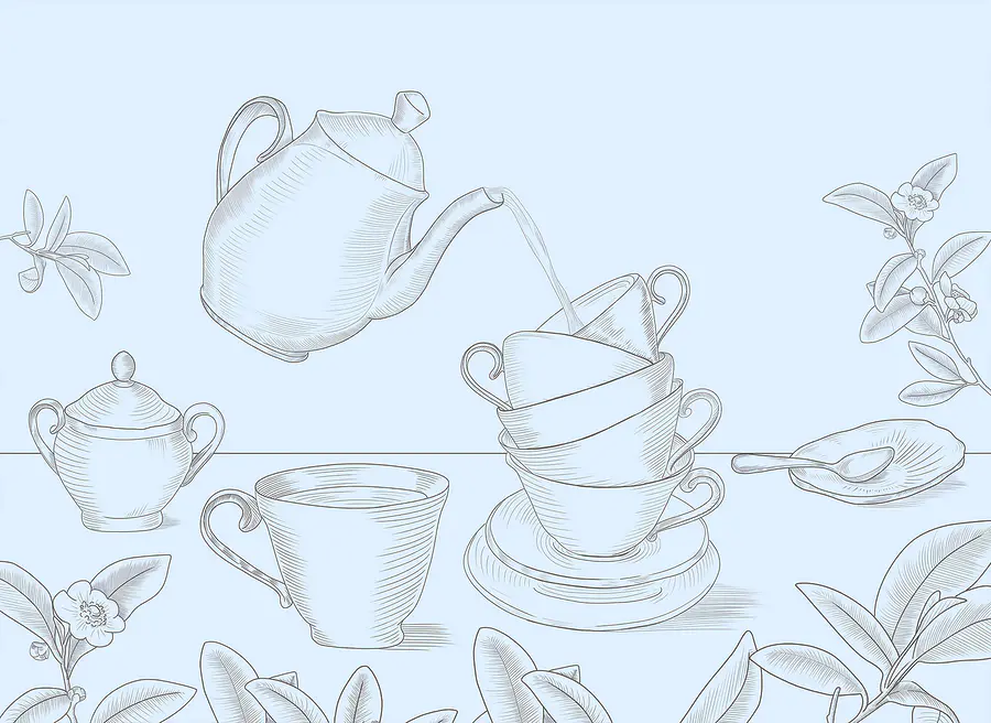 Papier peint Théière versant dans une pile de tasses à thé