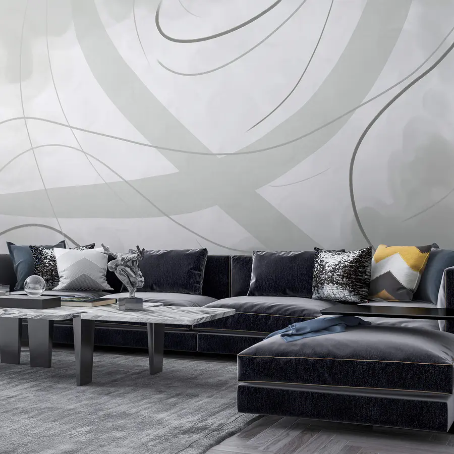 Papier peint Fond blanc et gris avec des lignes et des courbes
