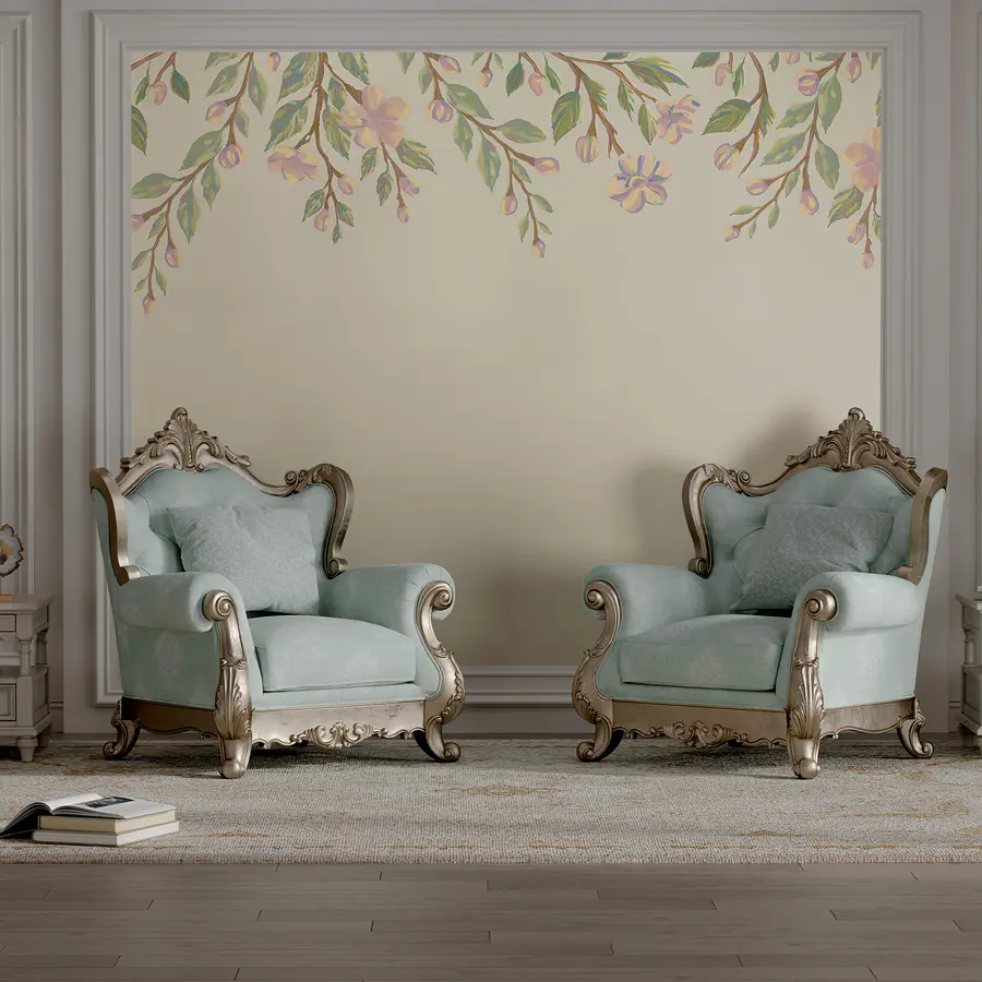 Papier peint De délicates fleurs encadrent un fond doux