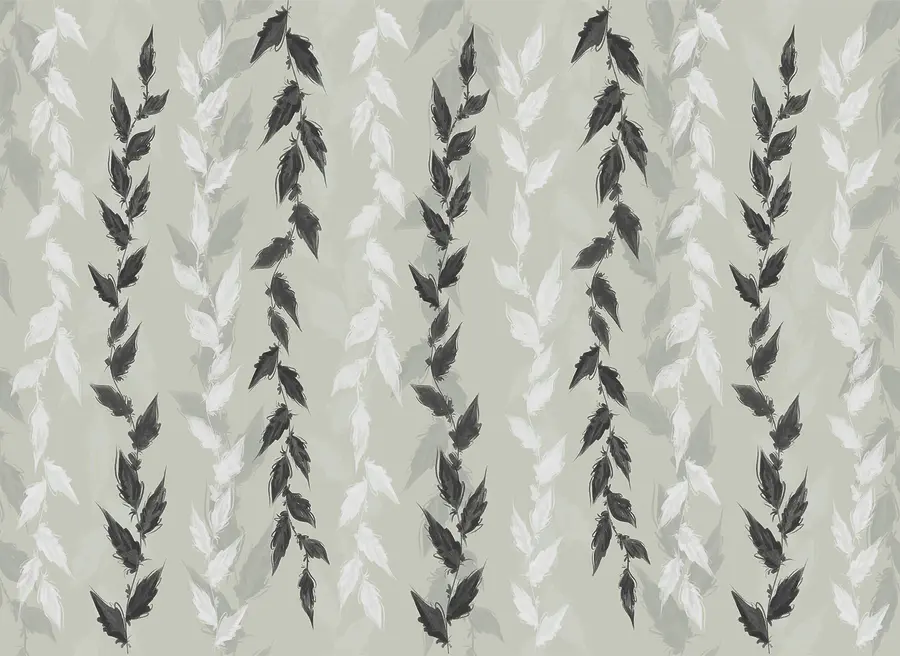 Papier peint Feuilles noires et blanches sur fond gris