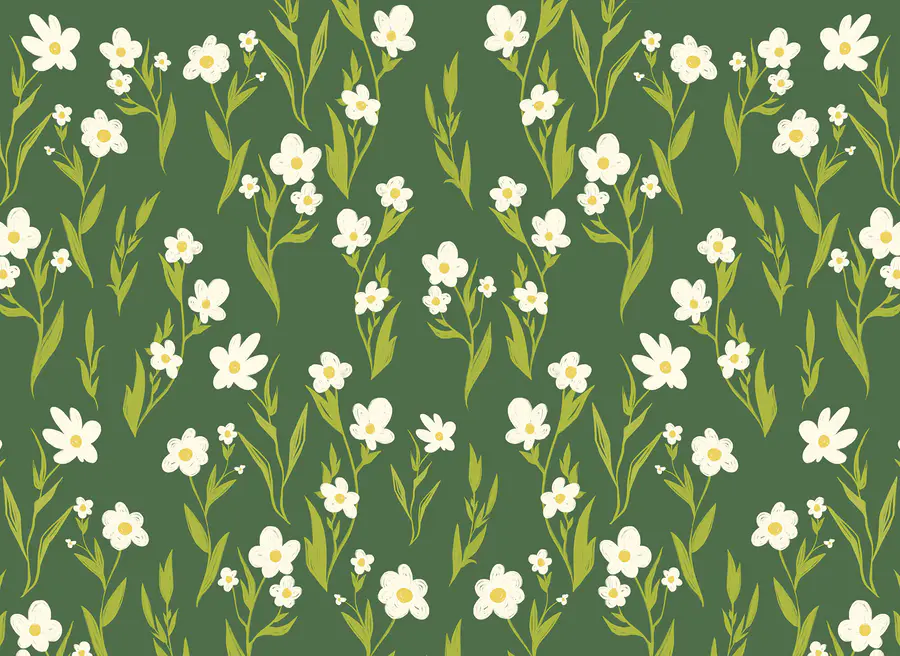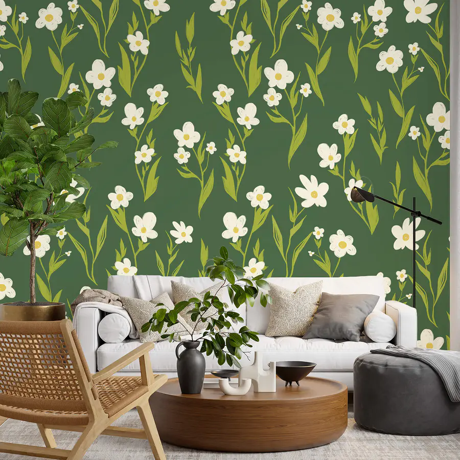 Papier peint Motif de fleurs blanches et de feuilles vertes