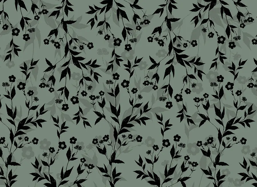 Papier peint Motif floral noir et blanc