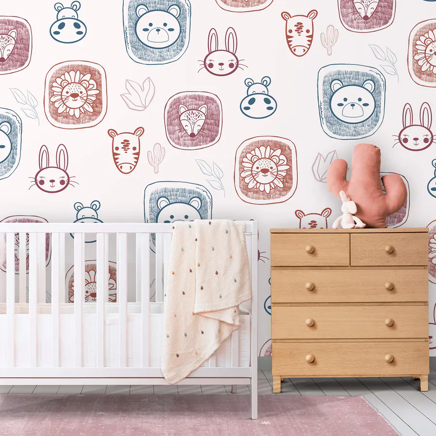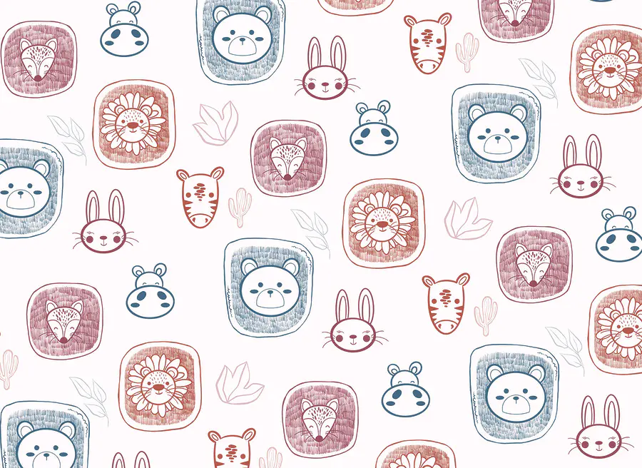 Papier peint Motif d’animaux sur fond blanc