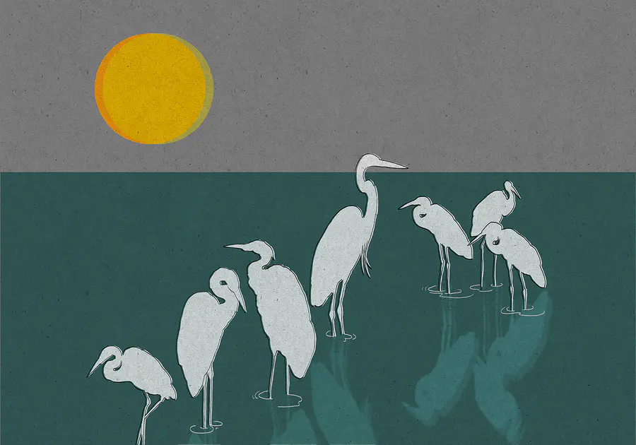 Papier peint Groupe d’oiseaux debout dans l’eau