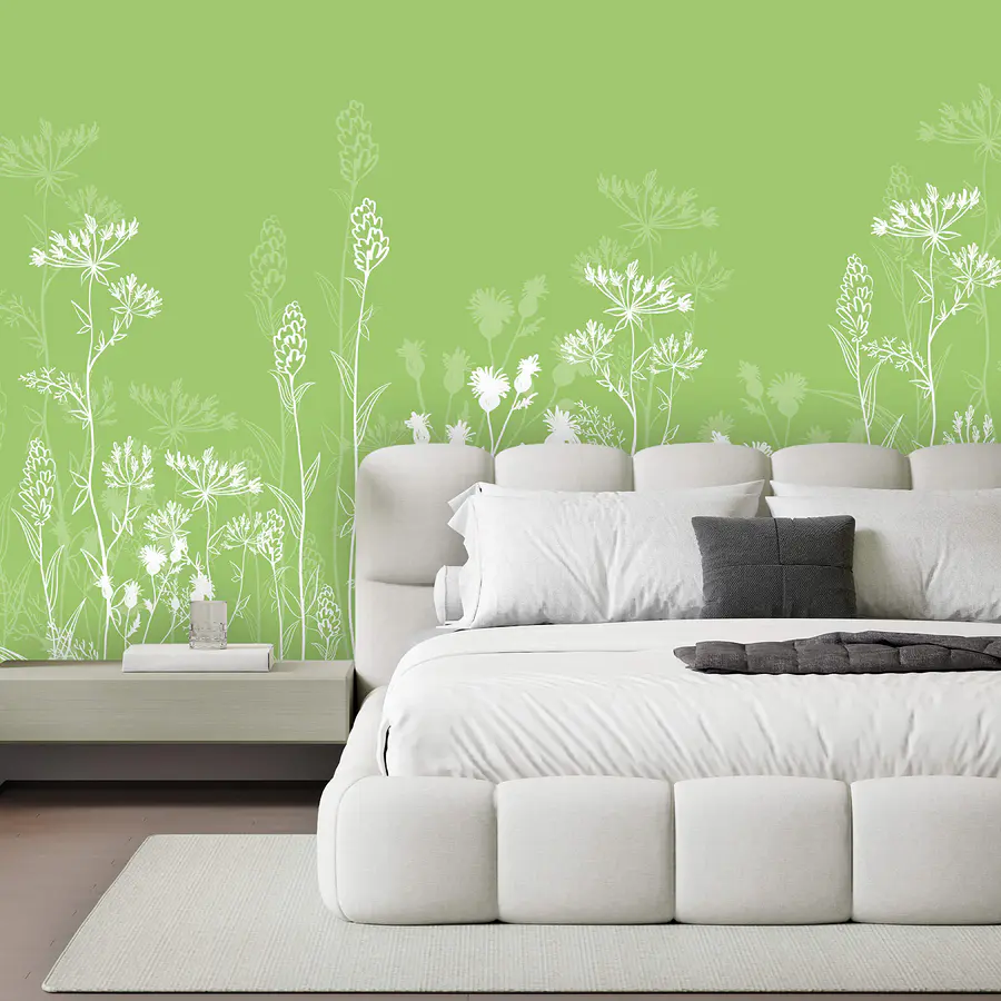 Papier peint Des fleurs blanches sur fond vert