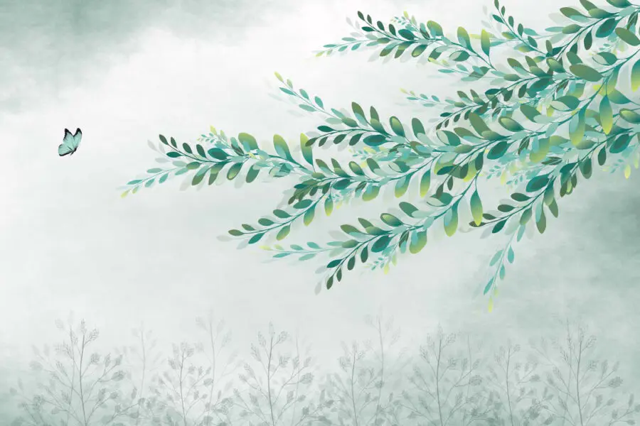 Papier peint Feuilles vertes sur une branche