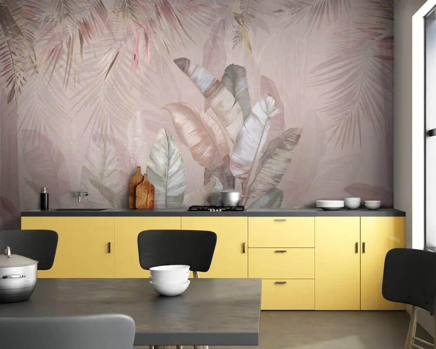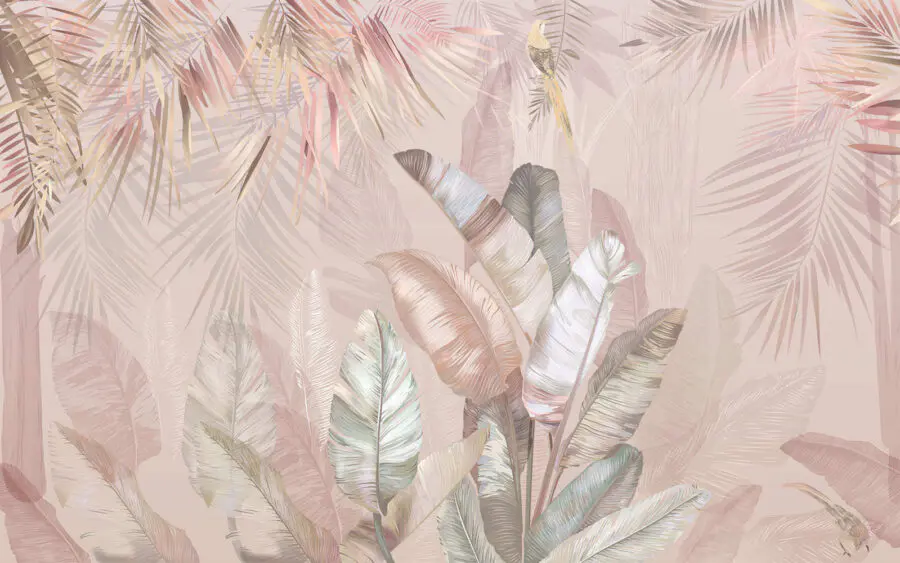 Papier peint Feuilles tropicales dans des tons pastel