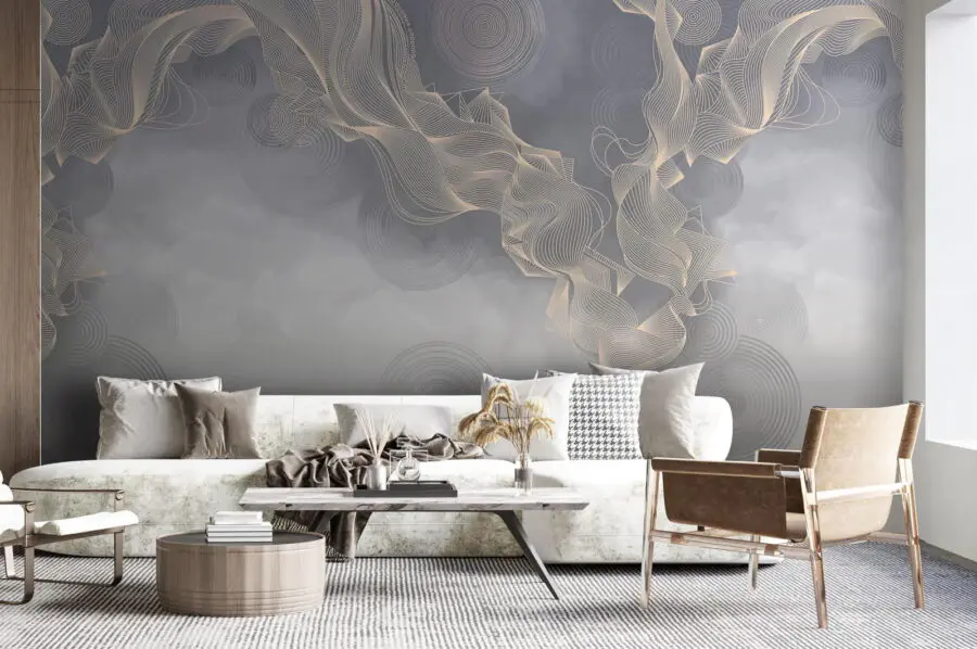 Papier peint Fond gris et blanc avec des cercles et des lignes